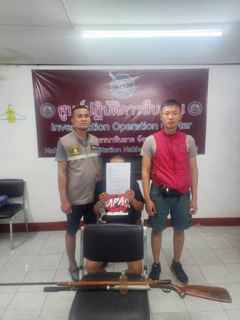ชุดสืบสวน สภ.นาหินลาด จับกุมผู้เสพยาเสพติดให้โทษประเภท1 และมีเครื่องกระสุนปืนไว้ในครอบครองโดยไม่ได้รับอนุญาตจากนายทะเบียน 4 กุมภาพันธ์ 2025 โดย admin / ข่าวประชาสัมพันธ์ เมื่อวันที่ 4 กุมภาพันธ์ 2568 เวลา 13.30 น. ร.ต.ท.วิบูลย์ ทองโอภาส รองสว.(ป.)ฯ,ส.ต.ท.ธนากร ทองพิมพ์ ผบ.หมู่(ป.)สภ.นาหินลาด,ส.ต.ท.ภัทรดนัย ธาดา ผบ.หมู่(ป.)สภ.นาหินลาด,ส.ต.ท.อิสรภาพ อินทร์ชัยศรี ผบ.หมู่(ป.)ฯ , พร้อมกำลัง จับกุมตัว นาย ปรีชา มั่งคั่ง อายุ 38 ปี บ้านเลขที่ 118 หมู่ที่ 7 ต.โคกกรวด อ.ปากพลี จ.นครนายก โดยกล่าวหาว่า เสพยาเสพติดให้โทษประเภท1 เมทแอมเฟตามีนโดยผิดกฎหมาย มีอาวุธปืน และเครื่องกระสุนปืนไว้ในครอบครองโดยไม่ได้รับอนุญาตจากนายทะเบียน สถานที่จับกุม บ้านเลขที่ 118 ม.7 ต.โคกกรวด อ.ปากพลี จว.นครนาย
